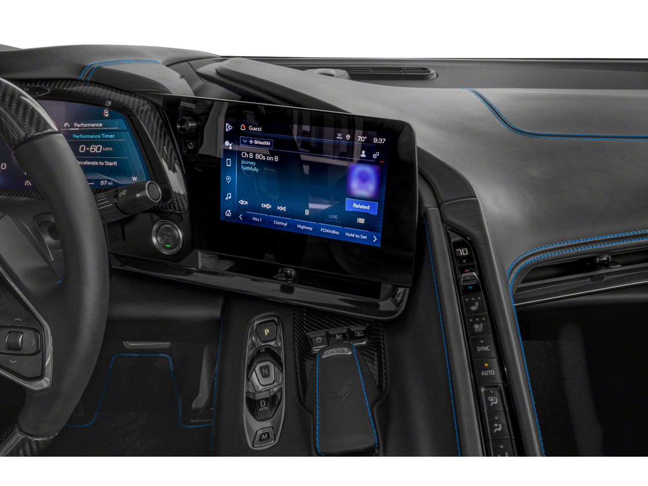 - Carbon fiber and sueded microfiber-wrapped steering wheel